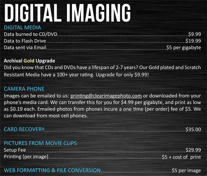 Clear Image is a full-service photo, print, and custom framing shop located on the picturesque Olympic Peninsula in Sequim, Washington. We offer a wide array of services including photo restoration and editing, enlargements, digital photo, video, and audio conversions, custom picture and mirror framing and repairs, dry mounting, and more. Our artists take pride in their work and always strive to provide the best in customer service and quality products to serve your needs.